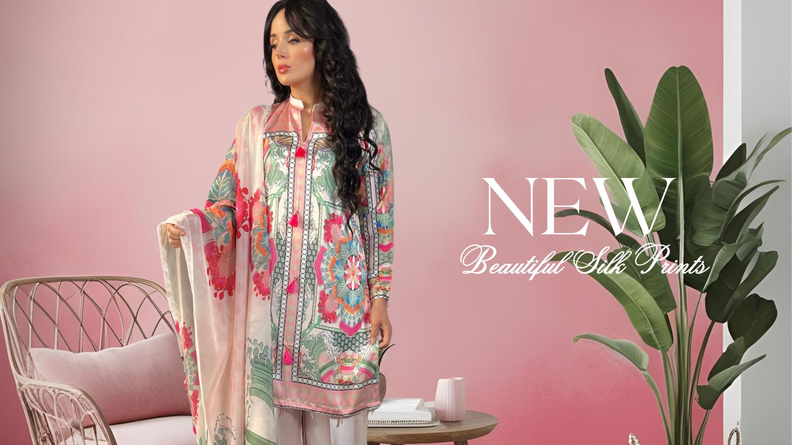 Ayeza White Geometric Printed Satin Silk 3 Piece Suit
