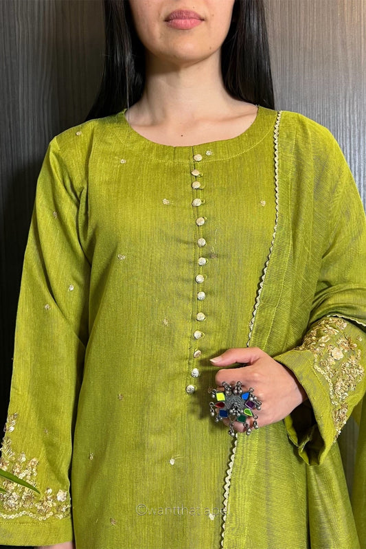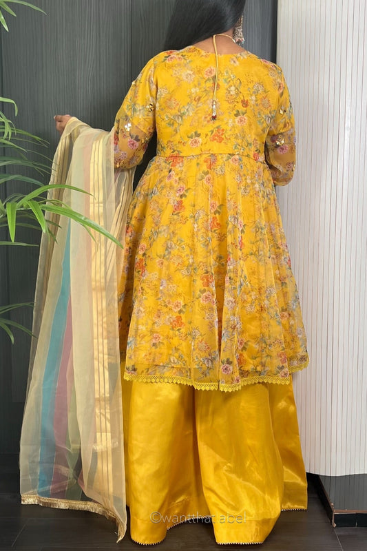Avsha Mustard Mirror Embroidered Anarkali Sharara Suit