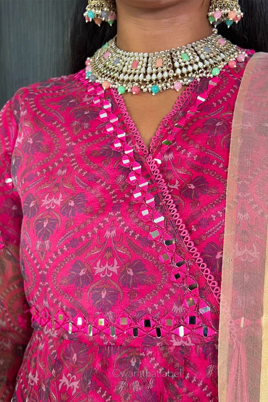 Saira Hot Pink Mirror Embroidered Anarkali Sharara Suit