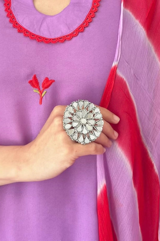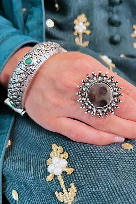 Amara Silver Oxidized Round Vintage Mirror Mosaic Ring