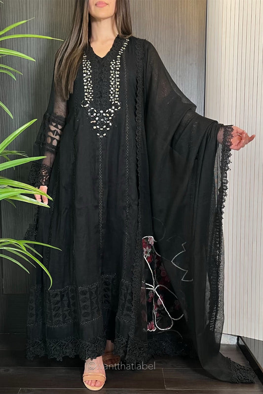 Maya Black Mirror Embroidered A-Line Dress Suit