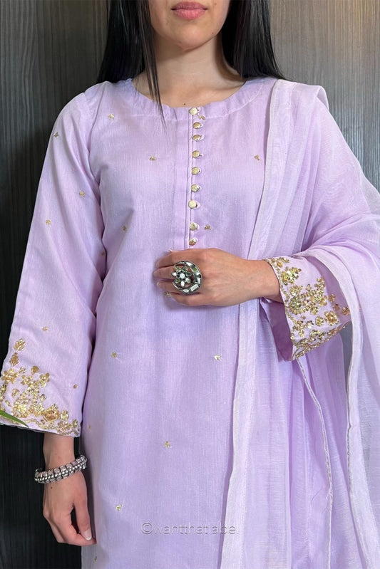Isha Lilac Zari Embroidered Khadi Net Suit