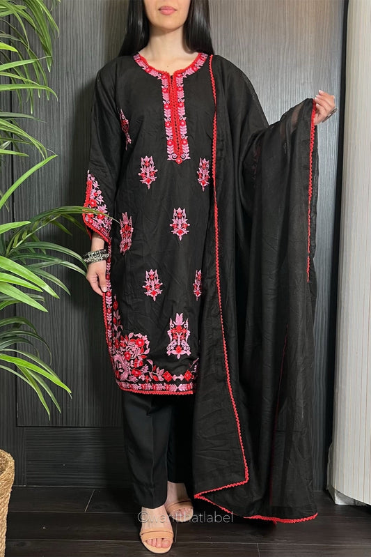 Sameera Black Red Pink Embroidered Khadi Net Suit