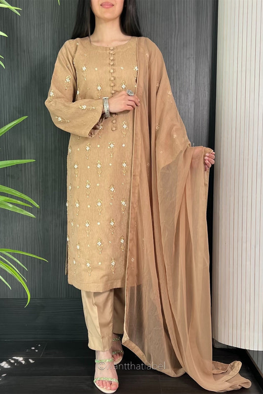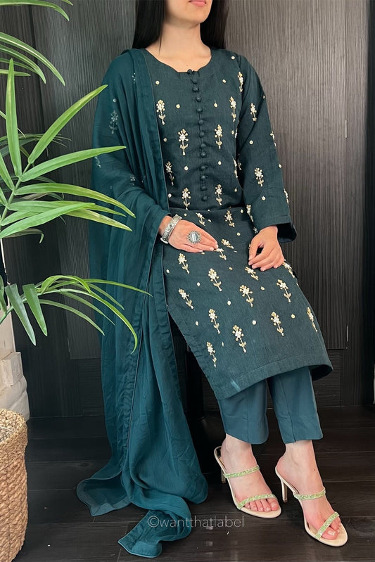 Yasmin Teal Bead Embellished Khadi Net Suit