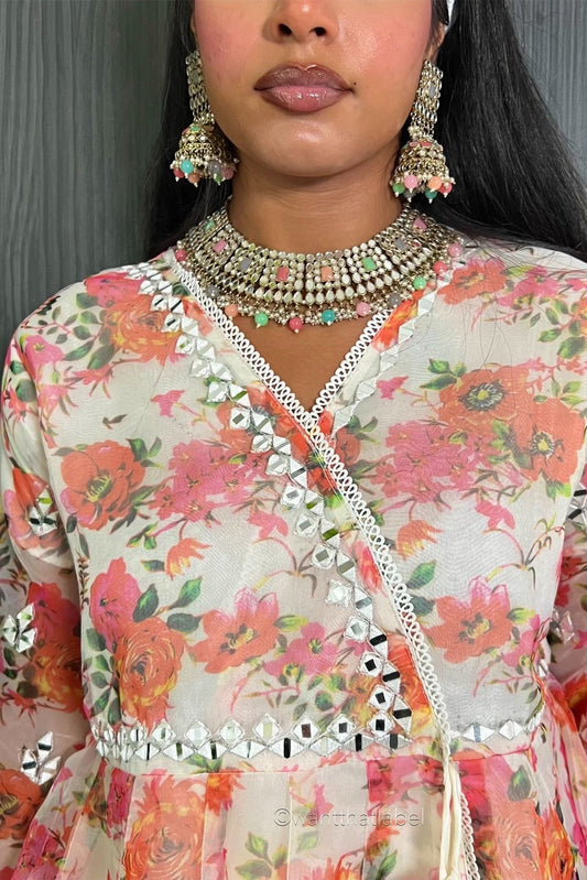 Muskaan White Mirror Embroidered Anarkali Sharara Suit