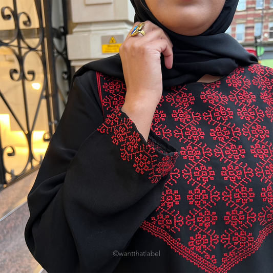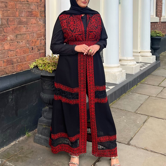 Aisha Palestinian Black Red Embroidery Maxi Abaya Thobe