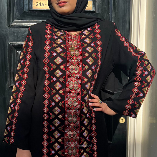 Hawaa Palestinian Black Multi Embroidery Maxi Abaya Thobe
