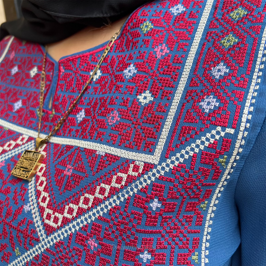 Imaan Palestinian Blue Red Embroidery Kaftan Dress